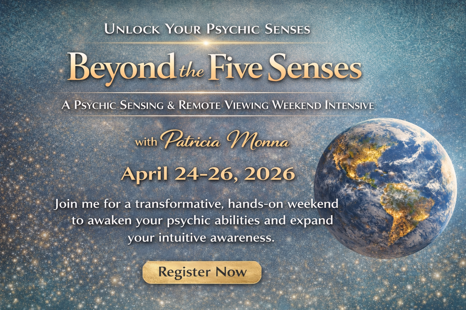Beyond the Five Senses is a weekend designed to awaken your psychic senses and connect you with the field of consciousness that exists beyond the physical world. Join Patricia Monna Psychic Medium and Remote Viewer, in-studio for a weekend intensive where you’ll be guided step-by-step into higher levels of psychic perception, clarity, and intuitive mastery.